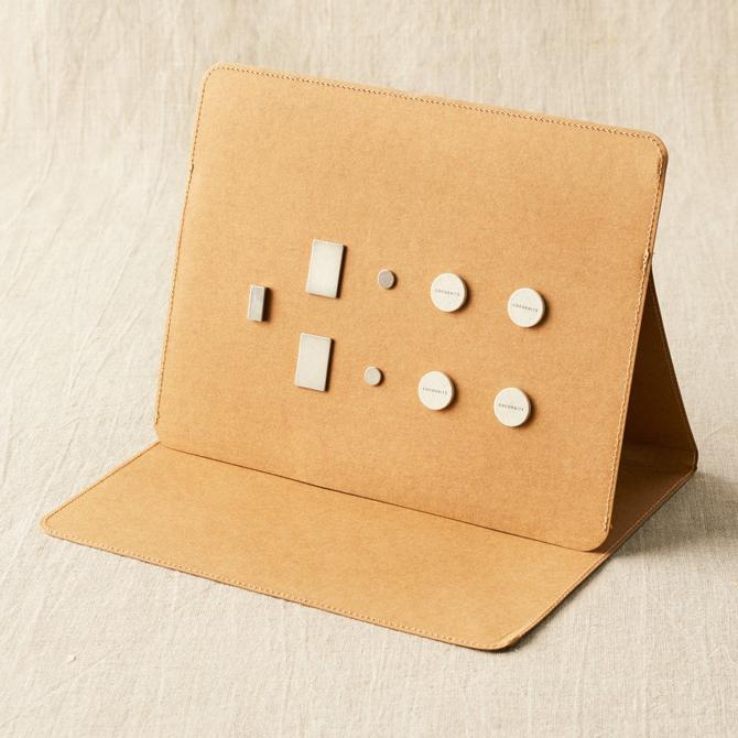 This is one accessory that can do a lot! Made with washable kraft fabric, there are internal metal sheets that make every surface magnetic. You can stick a chart on one surface, your pattern on another, and when you prop one side up for display, the angle is completely adjustable, making it even more versatile. Use the strong magnets included to keep small tools, charts, patterns, recipes, and more at hand while you’re working.